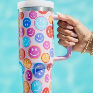 Rainbow Smiley Face Pattern Tumbler with straw