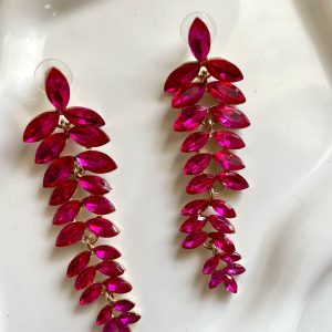 Pink Diamanté Leaf Flower Earring
