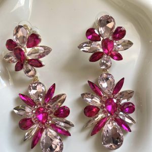 Pink Drop Diamanté Flower Earring